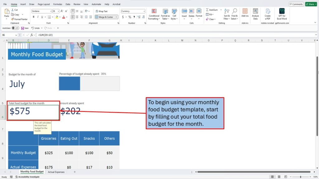 🥗 How to Use the Monthly Food Budget Template in Excel 365 — Step-by-Step Guide